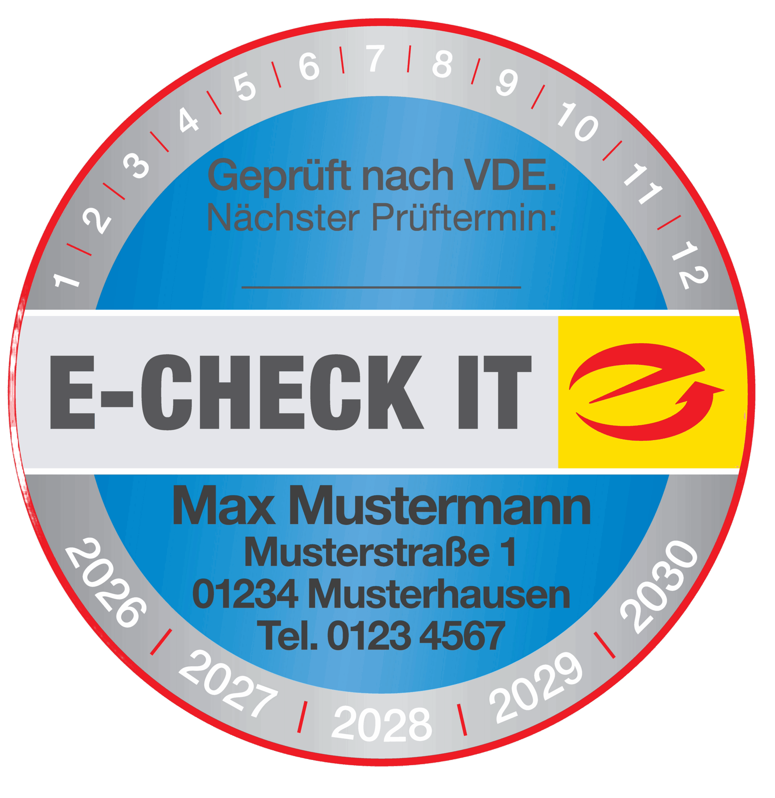 Sicherheits-Prüfplakette E-CHECK für IT. Mit Ihrem Firmeneindruck!